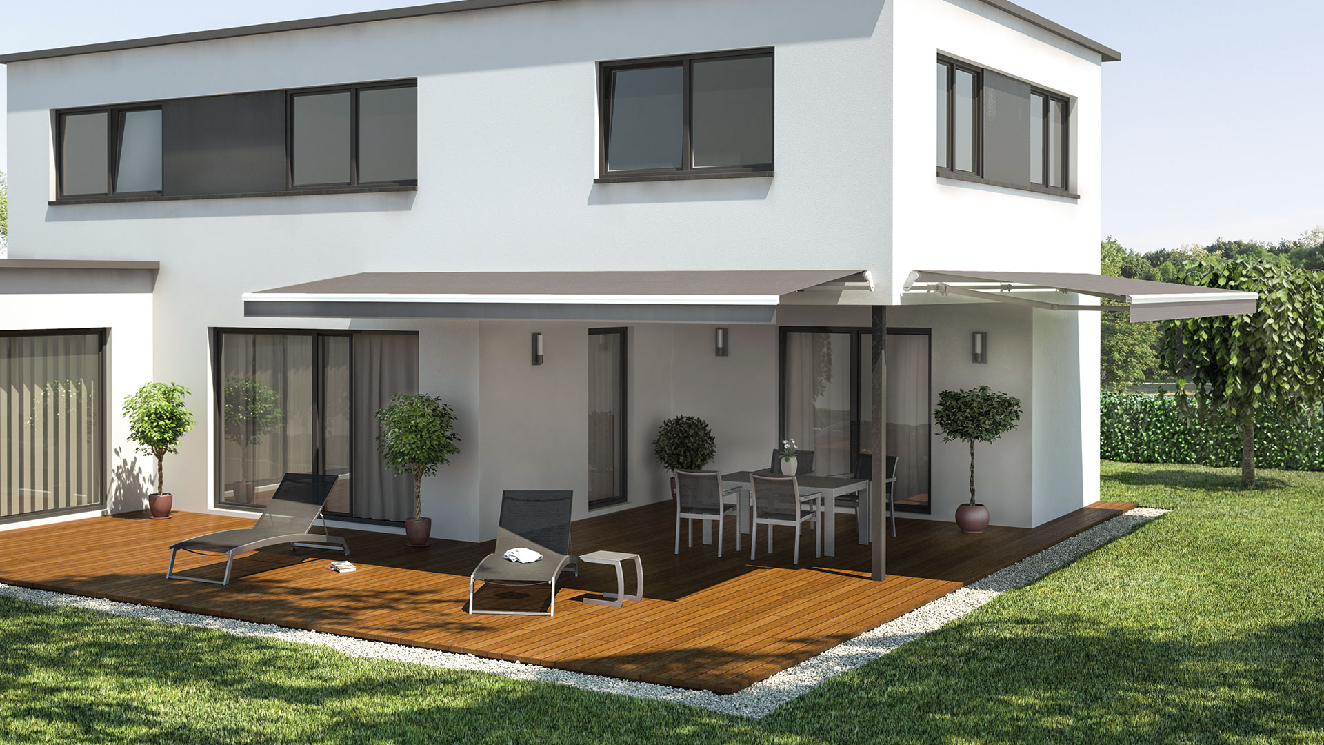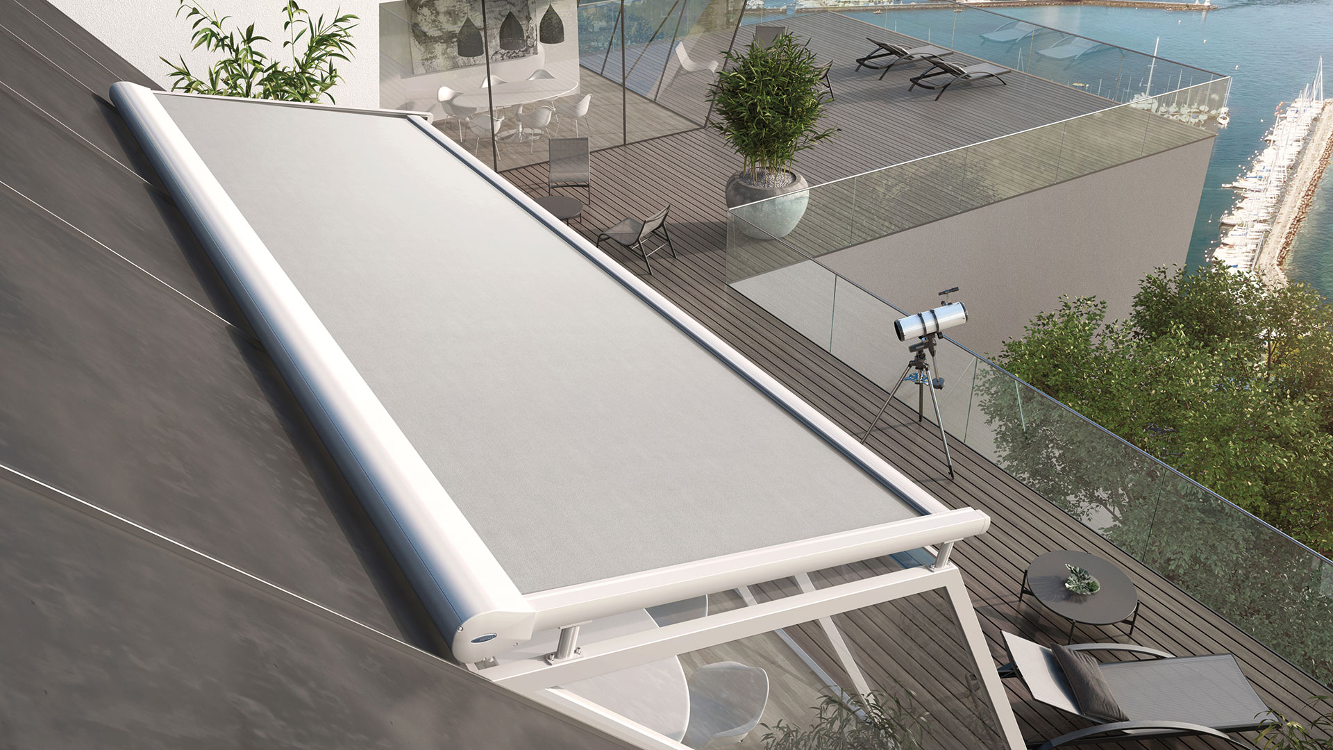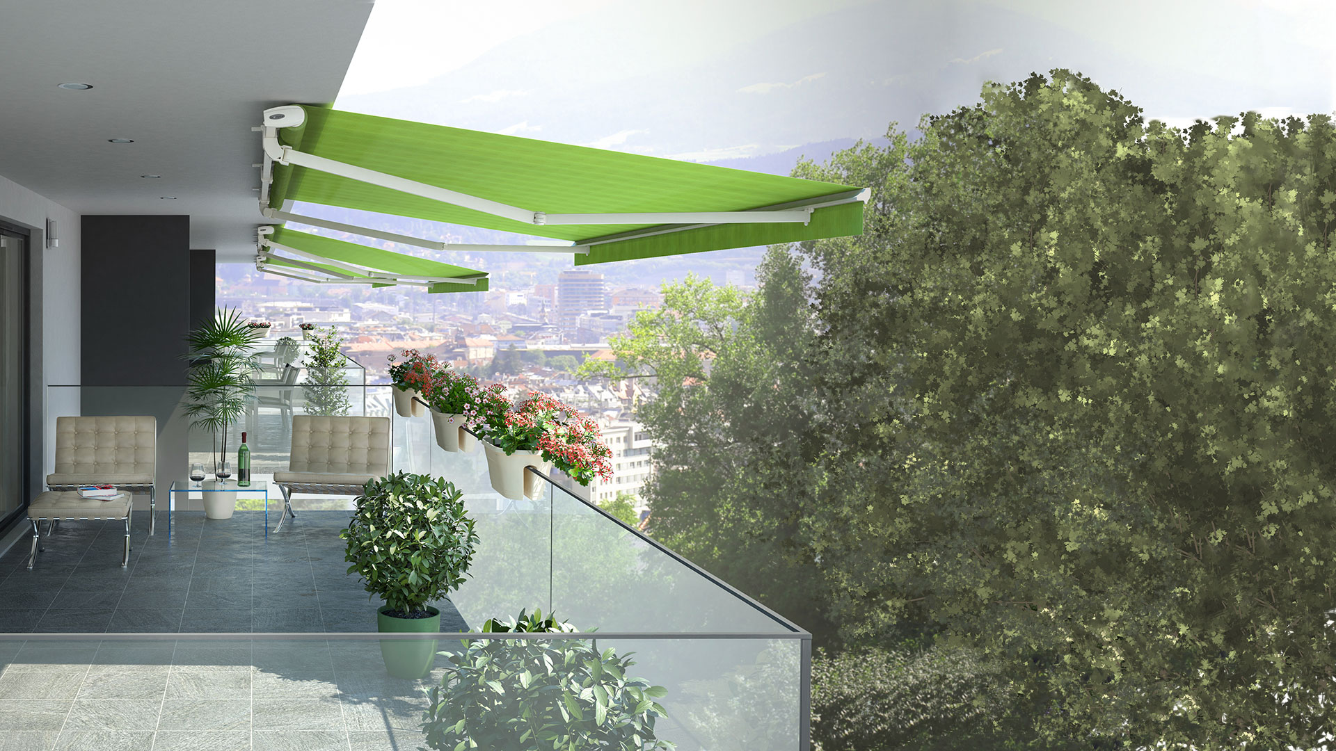Der Antrieb Elektrisch per Schalter, Fernbedienung oder vollautomatisch im Programm „Sonne – Wind“, sind optional erhältlich.